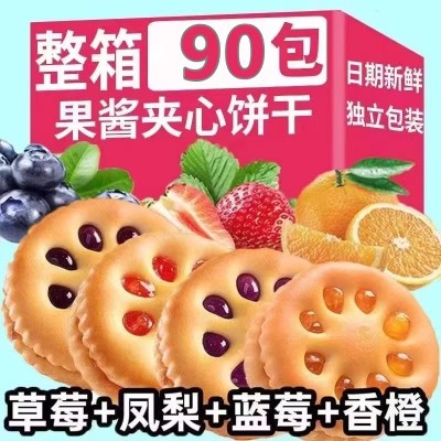 多口味果酱夹心饼干混合酱心休闲解馋儿童零食小吃草莓蓝莓