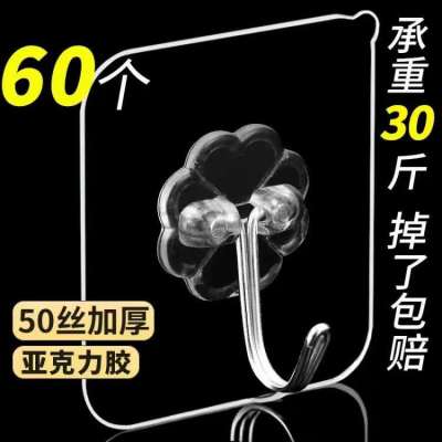 质乐挂钩子强力粘胶墙壁挂墙上无痕承重吸盘厨房勾衣帽粘贴免打孔粘钩 粘钩【50丝+亚克力胶】60只