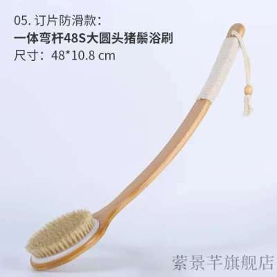 猪鬃浴刷洗澡刷身体干刷后背搓背搓泥神器搓澡长柄沐浴背刷子 升级防滑款:一体弯杆40S大圆头猪鬃浴刷(软毛)