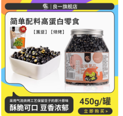 良一盐炒黑豆高蛋白豆零嘴原味盐味黑豆办公室酥脆豆子450g罐装