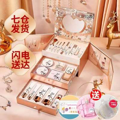 HLOFF一鹿有你化妆品全套彩妆套装口红礼盒生日礼物送女朋友老婆女生 一鹿臻情三层彩妆礼盒