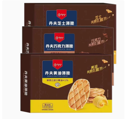 丹夫巧克力薄脆饼干88g/盒华夫黄油薄脆饼5盒奶油芝士脆酥脆饼干