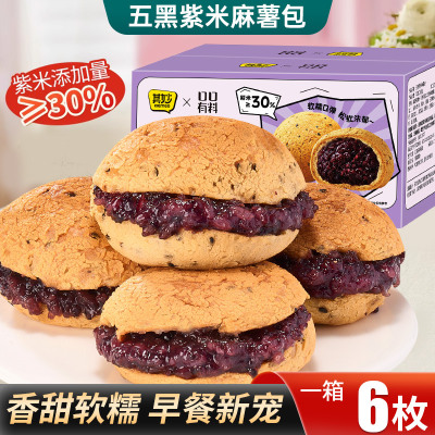 五黑紫米麻薯包爆浆夹心面包球黑米泡芙整箱正宗早餐速食网红零食
