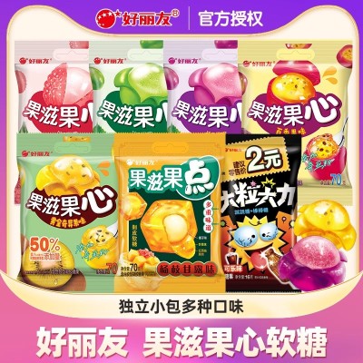 好丽友果滋果心软糖青紫葡萄口味果汁手剥注心儿童橡皮糖喜糖零食