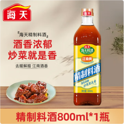 海天精制料酒1.28L 家庭装去腥调味料酒 炒菜烧菜调味酒 去腥增香黄酒 精制料酒800ml*1瓶