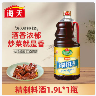 海天料酒1.9L精制料酒 商用炒菜去腥黄酒 腌肉料除膻味 调料米酒 精制料酒1.9L*1瓶
