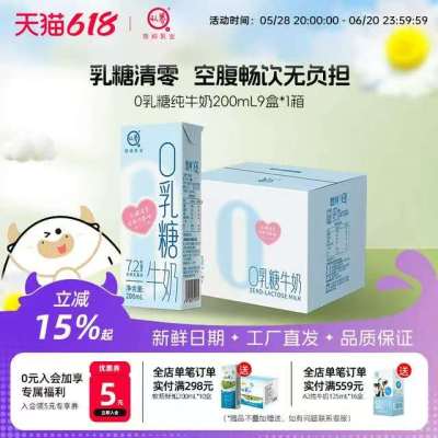 认养0乳糖牛奶200ml*9盒学生儿童营养早餐奶高钙型0乳糖舒化牛奶