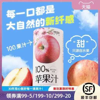 橙宝100%纯果汁红富士苹果汁儿童早餐果汁饮料195ml*12罐整箱装