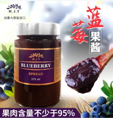 R.J.T加拿大原装进口蓝莓酱果酱 95%果肉含量三明治面包早餐伴侣瓶装酱 加拿大蓝莓果酱375ml
