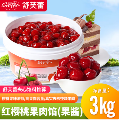 舒芙蕾(Souffier)红樱桃果粒酱刨冰粉奶茶店烘焙原配料车厘子蛋糕夹心果肉馅商专用 红樱桃果肉馅3kg