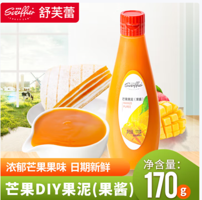 舒芙蕾(Souffier)果蓉涂抹面包家用慕斯淋面蛋糕果泥挤压瓶装果酱写字画画果茸烘焙 芒果果泥170克(家用装)