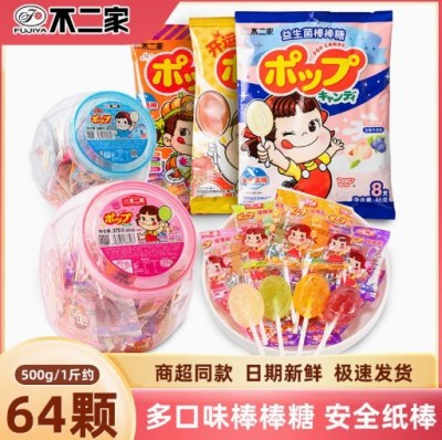 不二家棒棒糖60支桶装儿童糖果礼物盒混合味水果牛奶儿童节小零食