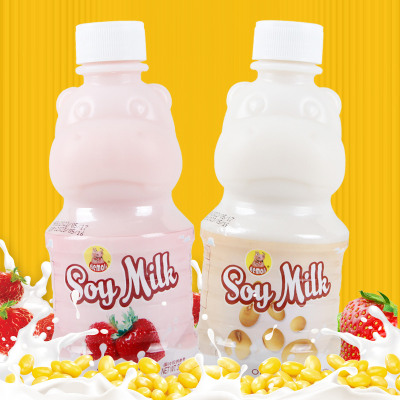 河马莉常温豆奶饮料原味草莓味320ml塑料瓶装饮料批发豆奶饮品