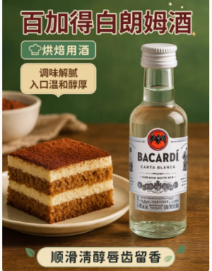 百加得白朗姆酒50ml芝士蛋糕提拉米苏原料家用烘焙调味小酒莫吉托