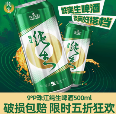 珠江啤酒经典纯生啤酒500ml*24罐9度鲜爽生啤口感纯正风味十足