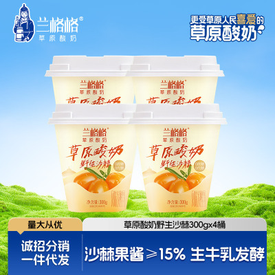 兰格格草原酸奶无蔗糖野生沙棘味300g*4瓶生鲜低温酸奶酸牛奶批发