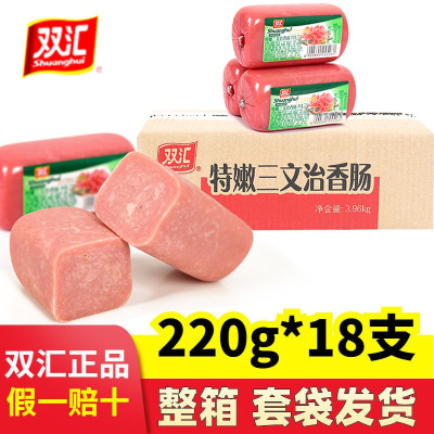 双汇美味特嫩三文治火腿220g整箱商用午餐肉花方腿香肠炒菜