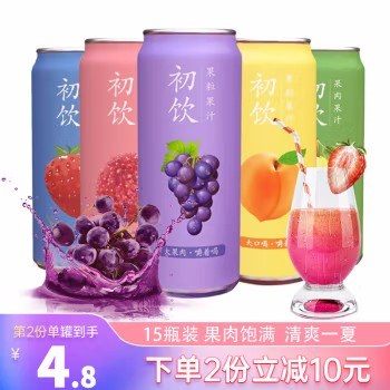 初饮果粒果肉果汁500g饮品果味饮料冷藏易拉罐装含果肉大瓶 初饮15瓶【(葡萄+草莓+橙汁+荔枝+黄桃)*3】