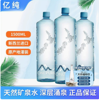新西兰亿纯ONEPURE进口矿泉水1.5L整箱高端进口饮用水大瓶泡茶水