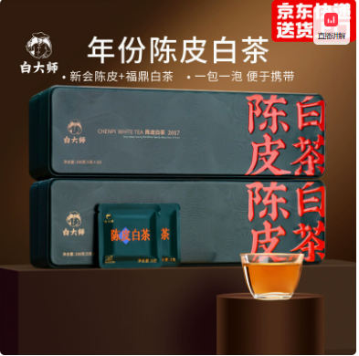 白大师2017年新会陈皮白茶高山福鼎白茶老寿眉小方片茶叶礼盒200g