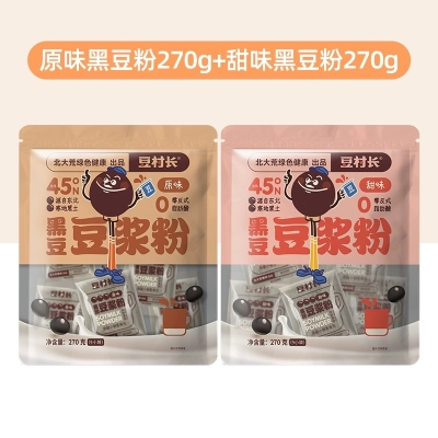 豆村长原味东北黑豆豆浆粉270g甜味黑豆粉即食冲泡营养早餐小包装