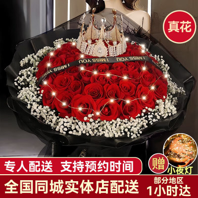 米苏先生新鲜玫瑰表白生日礼物全国同城配送生日蛋糕烘焙 99朵红玫瑰花束——永恒的爱