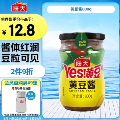 海天 黄豆酱 800g 非转基因黄豆 优选黄豆 酱香浓郁 下饭烹调炒菜
