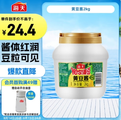 海天 黄豆酱 2kg 优选黄豆酿造 酱香浓郁 蒸炒焖拌 调味品