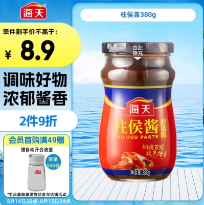 海天 柱侯酱380g 柱候酱 非转基因黄豆自然发酵 阳光酿晒