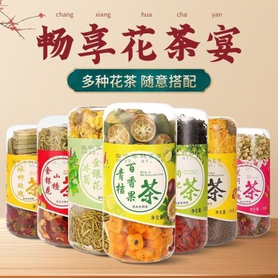 盛华花草茶组合青桔百香果冰菊金银花茉莉玫瑰菊花决明子多种花茶