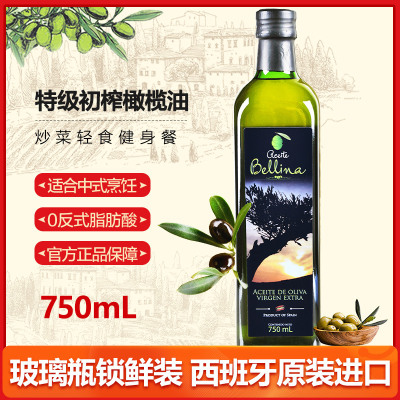 蓓琳娜欧洲原装进口100%特级初榨橄榄油750ml轻食健康炒菜食用油