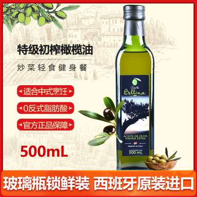 蓓琳娜欧洲原装进口100%特级初榨橄榄油500ml轻食健康烹饪食用油