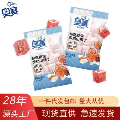 厂家直销批发奥赛草莓腰果酸奶山楂丁块休闲开胃山楂零食500g