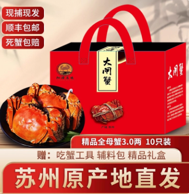 【活蟹】现货苏州大闸蟹鲜活特大螃蟹公蟹母蟹10只礼盒装阳澄晨曦