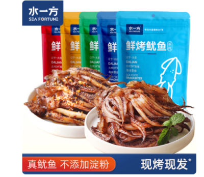水一方现烤鱿鱼须大连特产原味鱿鱼头碳烤川麻铁板鱿鱼丝海鲜零食