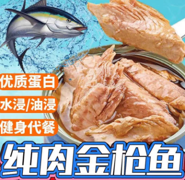 俄罗斯深海蓝鳍金枪鱼罐头度雄优选开盖即食鱼肉高蛋代餐沙拉熟食