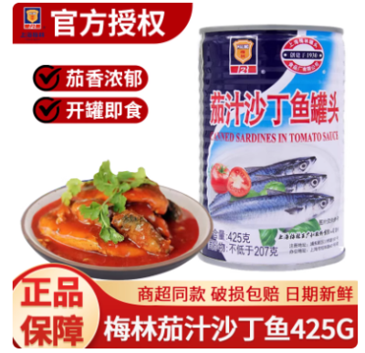 上海梅林茄汁沙丁鱼罐头425g熟食海鲜食品开罐即食下饭菜尝鲜