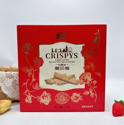 皕元112g脆芯卷蛋卷饼干盒装喜庆伴手礼搭档办公下午茶点心零食批