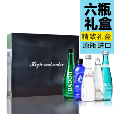 芙丝VOSS进口水依云天然矿泉水气泡水玻璃瓶饮用水6瓶礼盒套装 套装礼盒