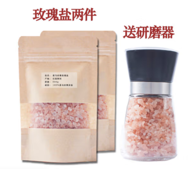 何厨道味喜马拉雅玫瑰盐巴基斯坦矿盐岩盐海盐粉盐红盐浴盐矿物盐研磨器 玫瑰盐1000克+研磨器