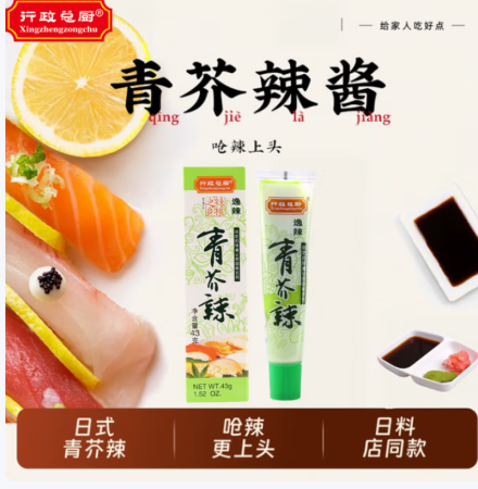 行政总厨青芥辣芥末酱日式寿司刺身芥末辣根芥末膏青芥末山葵酱日式芥末 青芥辣 生辣 43g/支