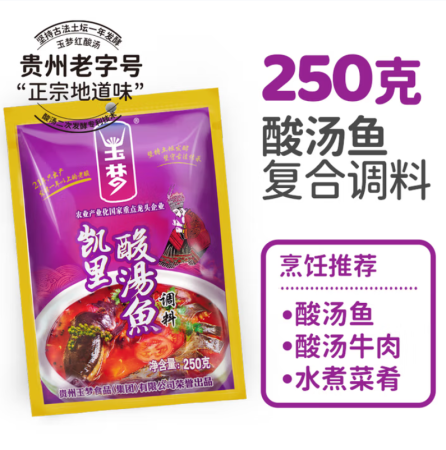 玉梦贵州特产 凯里红酸汤肥牛调料番茄火锅底料冬阴功汤料 凯里酸汤鱼调料250g*1袋