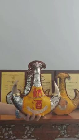 生产加工内蒙古特产皮壶奶酒蒸馏型奶酒真羊角真牛角手工瓶装礼盒