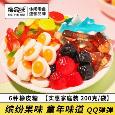 梅品味袋装橡皮糖200g童年味道多种形状口味QQ糖混合果汁网红软糖