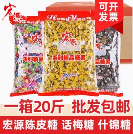 宏源陈皮糖5斤装4袋原装整箱20斤什锦糖话梅糖招待水果硬糖果批发