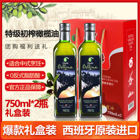 蓓琳娜西班牙进口特级初榨橄榄油750ml*2礼盒团购福利团购送礼