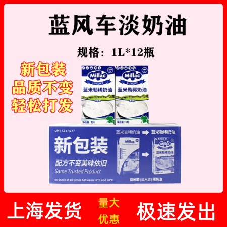 英国进口蓝风车淡奶油1L*12整箱蓝米勒动物性稀奶油蛋糕裱花蛋挞