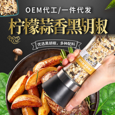 研磨瓶装柠檬蒜香黑胡椒粒调味料轻食西餐牛排烧烤柠檬蒜香黑胡椒
