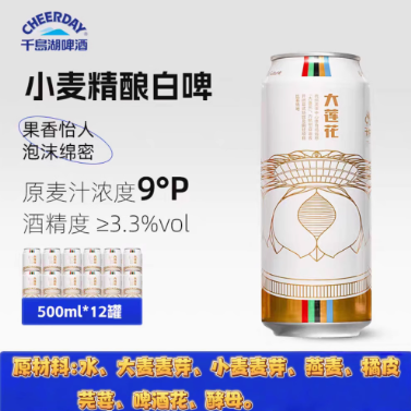 千岛湖啤酒小麦精酿白啤大莲花整箱装500ml*12听
