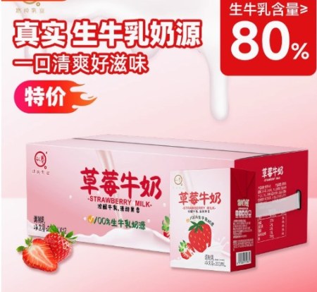 草莓牛奶200ml*12*2箱儿童学生早餐奶全脂甜牛奶饮品牛乳果汁